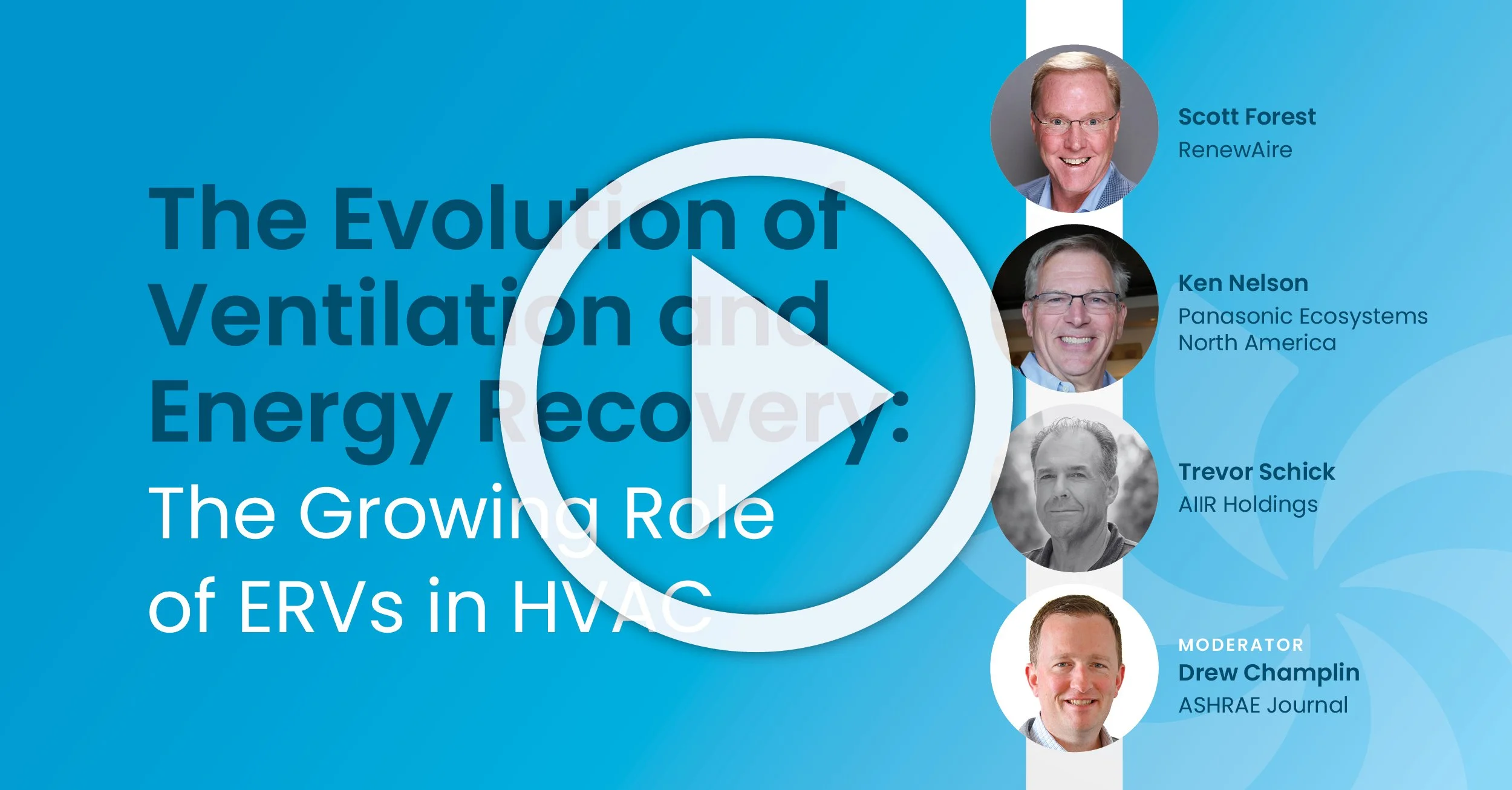 The Evolution of Ventilation & Energy Recovery: The Growing Role of ERVs in HVAC with Scott Forest, RenewAire; Ken Nelson, Panasonic Ecosystems North America; Trevor Schick, AIIR Holdings; Drew Champlin, ASHRAE Journal • More >