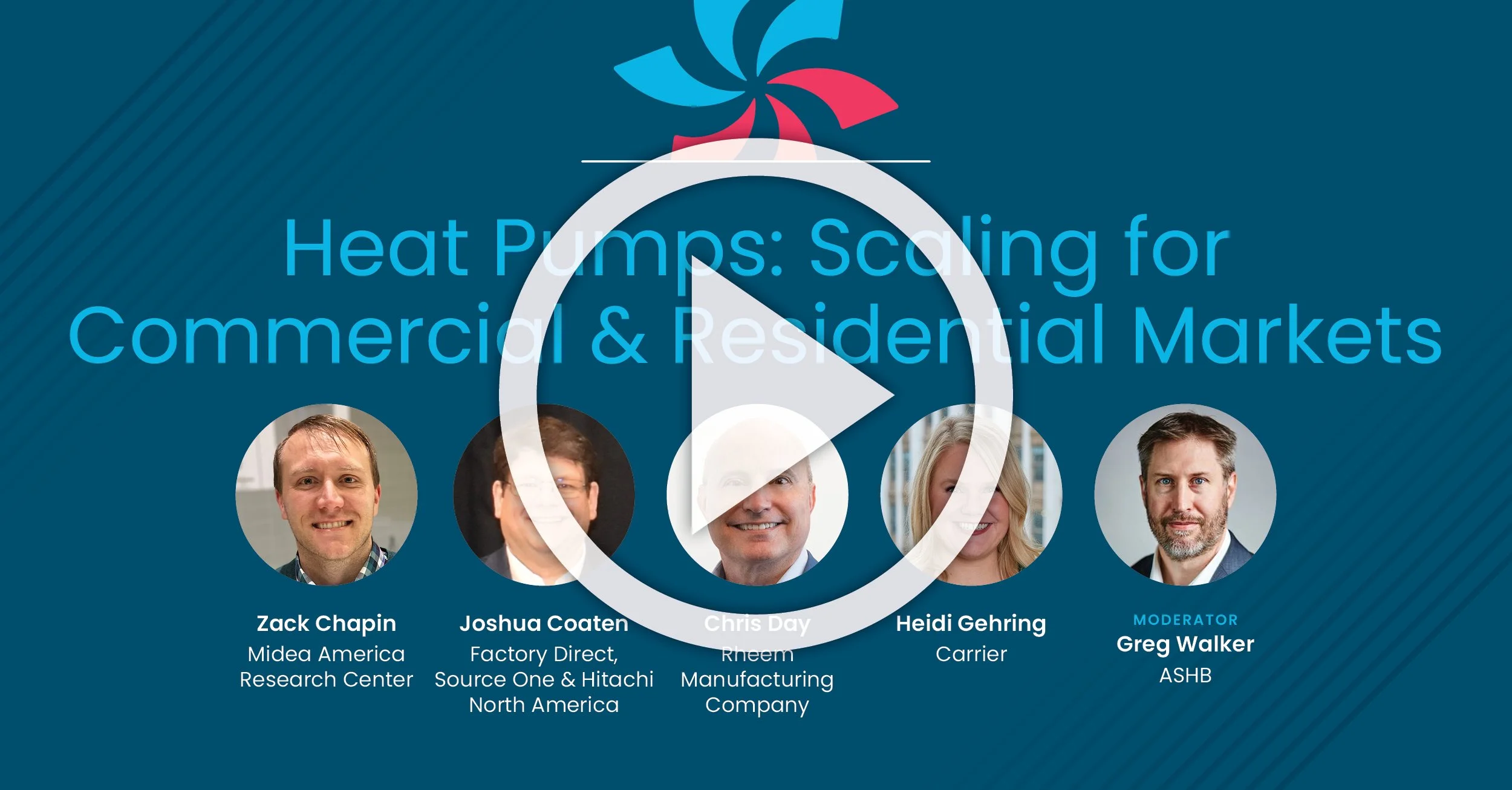 Heat Pumps: Scaling for Commercial and Residential Markets with Zack Chapin, Midea America Research Center; Joshua Coaten, Factory Direct, Source One, & Hitachi North America; Chris Day, Rheem Manufacturing Company; Heidi Gehring, Carrier; Greg Walker, ASHB • More >